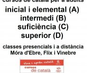 El Servei Comarcal de Català de la Ribera d’Ebre ofereix per al segon trimestre d’aquest curs escolar, a partir del gener de 2015, diversos cursos de llengua catalana per a persones adultes a Móra d’Ebre, Flix i Vinebre, que es duran a terme en modalitats presencial i a distància. Les persones interessades poden demanar més informació al telèfon 977 40 […]